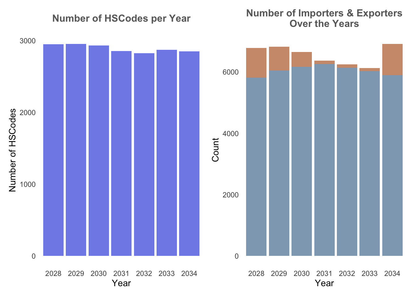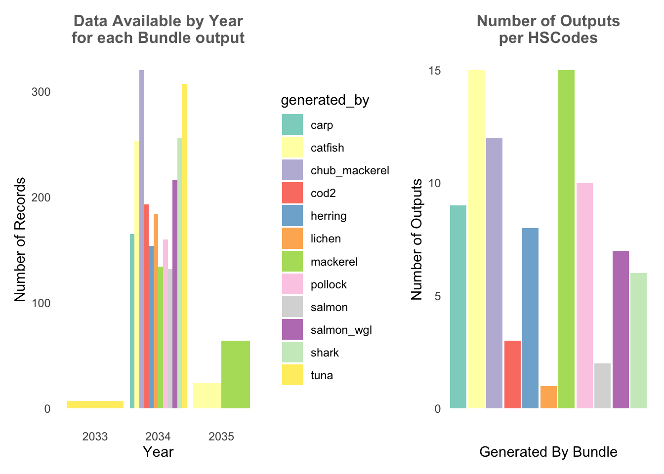 From below, it can be observed that the bundles output records only have data from 2033-2035, and where only the year 2034 do all the bundle outputs have data. In addition, different bundles have differing number of HSCodes.